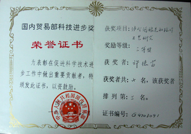 國內(nèi)貿(mào)易部科技進(jìn)步獎(jiǎng)